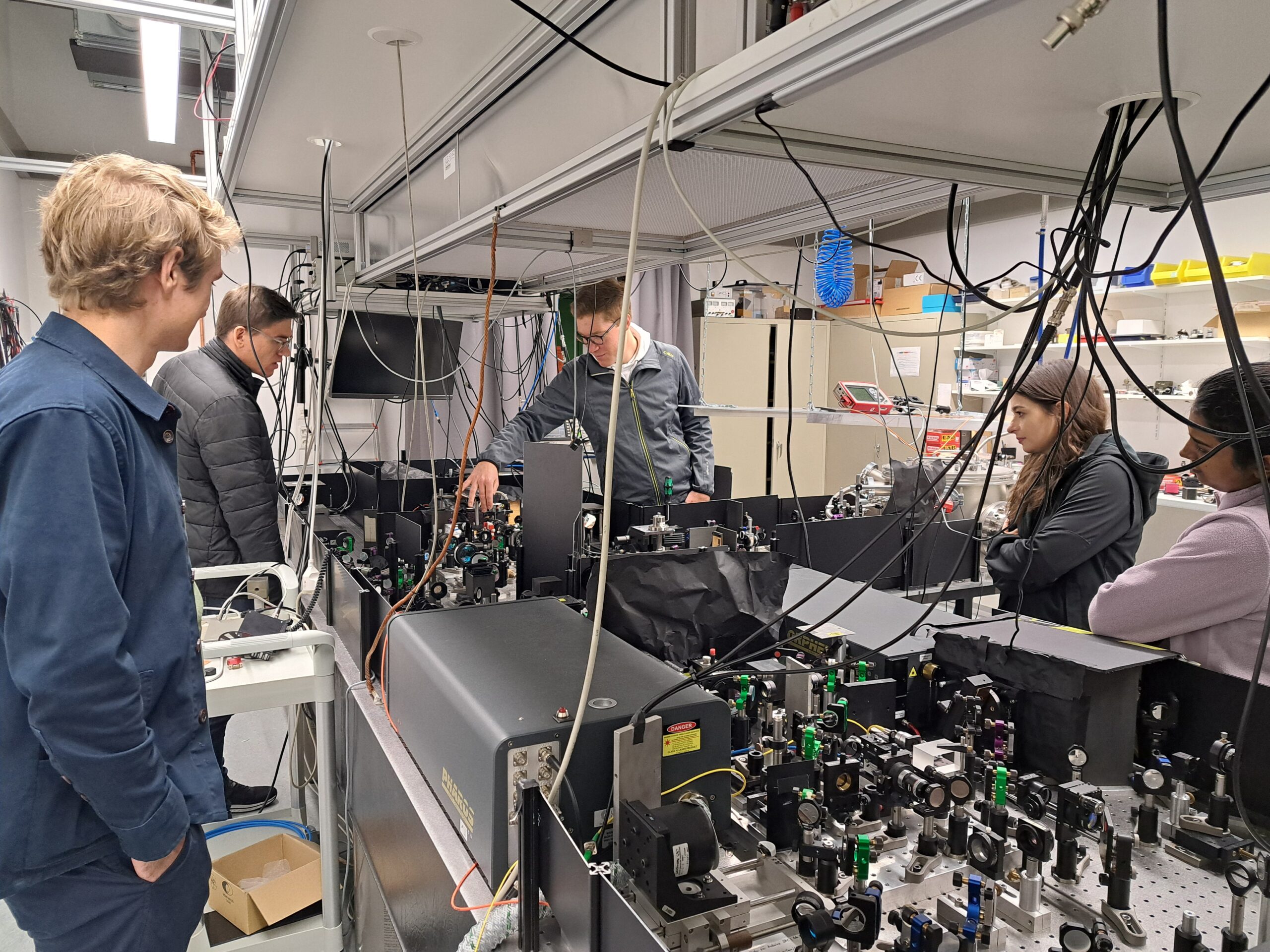 Another Lab Tour at EPVIII, guided by Fabian Brütting. He explains the set-up of ultrafast spectroscopy including the strong terahertz source that allows controlling excitons in semiconductor nanomaterials on sub-picosecond timescales.